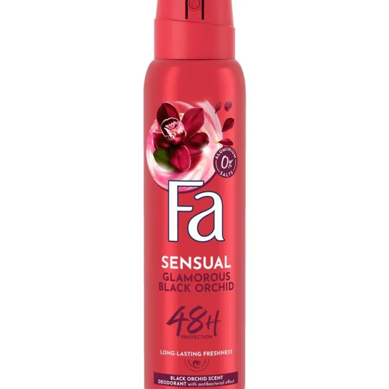 Ontdek Fa Glamorous Black Orchid deodorant spray met de geur van zwarte orchidee. De vegan formule biedt 48 uur bescherming tegen nare geurtjes en is vrij van aluminiumzouten.