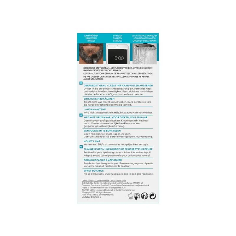 In de verpakking zit altijd een kleurbasis, kleurontwikkelaar, mengbakje, aanbrengborstel, plastic handschoenen en de simpele stap-voor-stap instructies. Kies de juiste kleur passend bij je baardkleur. Jouw aanbevolen tint hangt af van je natuurlijke haarkleur en hoeveelheid grijs. Let op: Kies bij twijfel een tint lichter. Inborstelen, 5 minuten wachten en uitspoelen met shampoo.