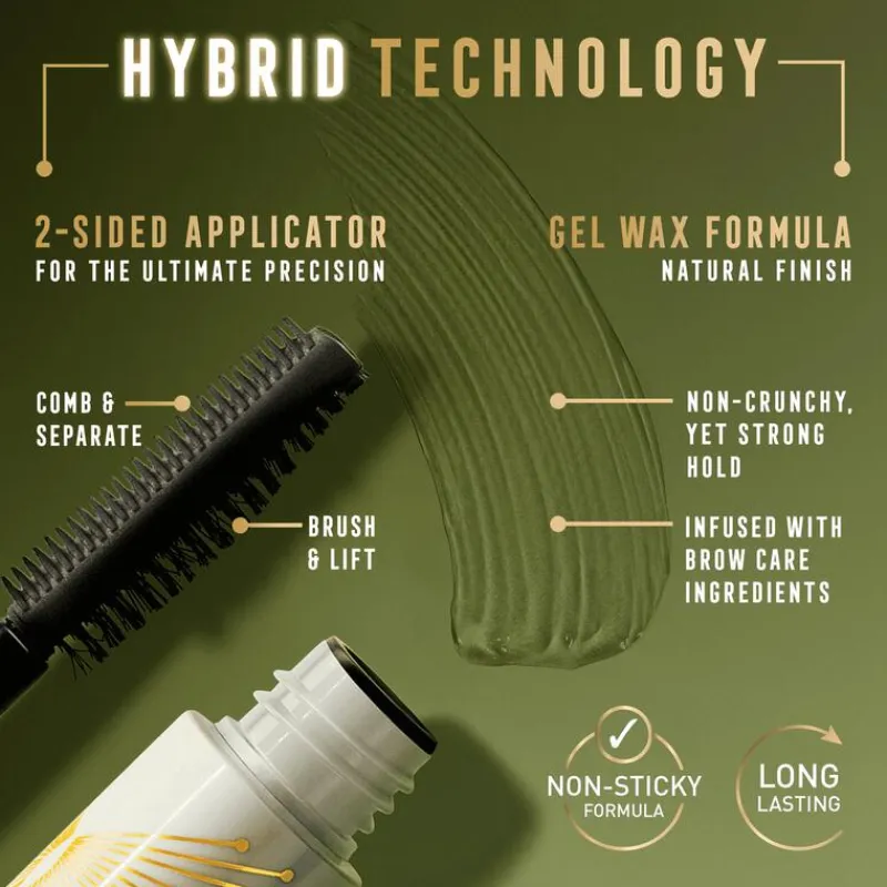 • Bevat hybride technologie en een gel-/waxformule. Met de dubbelzijdige applicator creëer je perfect gedefinieerde en gelifte wenkbrauwen met grote precisie, voor een lamineerresultaat zoals in de salon.