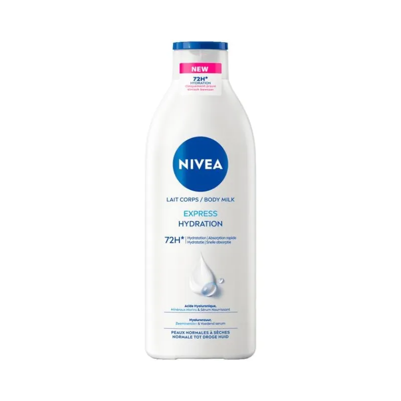 Heb je last van een droge huid of wil je dat voorkomen? Een bodylotion helpt je je huid te hydrateren. NIVEA’s gepatenteerde formule is verrijkt met verzorgend serum, een unieke samenstelling van het huideigen hydraterende vermogen, verzorgende lipiden en voedende oliën. NIVEA Express Body Lotion bevat daarnaast zeemineralen en trekt onmiddellijk in de huid om zijn werk te doen. Een zachtere huid, al in twee dagen: probeer deze bodymilk zelf en geniet van het resultaat.