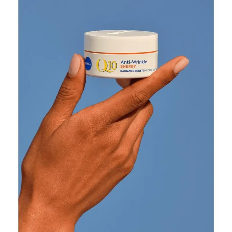 Bescherm je huid effectief met NIVEA Q10 Energy Anti-Rimpel Dagcrème. Deze crème is geschikt voor de normale en vermoeide huid, waarbij je iedere ochtend van een energieboost geniet. Dat laat de huid er frisser uitzien, maar zorgt er ook voor dat deze beter bestand is tegen schadelijke invloeden van buitenaf. Tegelijkertijd zorgen de voedende bestanddelen in de dagcrème voor zichtbaar minder rimpels. Naast het antirimpeleffect geniet je van de bescherming van de SPF15. De schadelijke stralen van de zon hebben geen effect meer op je huid, waardoor je vroegtijdige huidveroudering helpt voorkomen. NIVEA Q10 Energy Anti-Rimpel Dagcrème bevat twee krachtige antioxidanten. Huideigen antioxidant Q10 helpt bij het herstel van gezonde cellen en vermindert de vorming van rimpels. De toevoeging van vitamine C versterkt dit effect en beschermt tegen schadelijke invloeden van buitenaf. Met SPF biedt deze dagcrème een gezonde, stralende huid die er jonger uitziet en meer energie uitstraalt. • Vermindert rimpels en fijne lijntjes • Geeft de vermoeide huid een opfrisser • Beschermt de huid met SPF 15 en krachtige antioxidanten • Rijk aan huideigen Q10 en vitamine C • Voor de normale en vermoeide huid