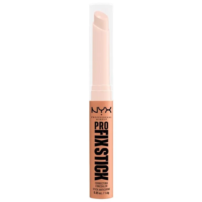 NYX Pro Fix Stick is een corrigerende concealer voor een gezondere, egaler uitziende huid. Donkere kringen? Verkleuringen? Roodheid? De Pro Fix-stick biedt de ideale oplossing. Pak huidstress aan en wees lief voor je huid. Met hyaluronzuur voor een zachte finish die nooit droog aanvoelt. Verkrijgbaar in 24 kleuren om imperfecties te camoufleren en je huid te doen stralen. Deze romige multitasker levert bovendien een volledige dekking met een matte finish die tot wel 12 uur houdt. De vegan en dierproefvrije formule zonder dierlijke bestanddelen laat geen plakkerig gevoel achter en is veegvast en transferproof.Deze concealer stick laat de huid ademen en voelt ongelofelijk comfortabel aan. Breng hem moeiteloos aan onder of op je foundation voor een natuurlijk stralende teint. De nauwkeurige punt geeft je de totale controle om het verschil te maken. Een fantastische oplossing om de zichtbaarheid van poriën en fijne lijntjes te verminderen!Kies uit een breed assortiment aan tinten voor alle behoeften en huidtinten. Neutraliseer roodheid op alle huidtinten met de kleur Green of camoufleer verkleuringen op een lichte huid met Pink. Yellow corrigeert donkere kringen en doet een lichte of gemiddelde huid stralen. Kortom, kies jouw optimaal dekkend kleur en ervaar het verschil!NYX Professional staat bekend om haar kwalitatieve, pigmentrijke make-upproducten en weerspiegelt de nieuwste make-up trends. In het portfolio van NYX vind je alles, van lippenstiften en oogschaduw tot eyeliners en concealers. Zowel populair bij het grote publiek, als bij professionele visagisten over de hele wereld!