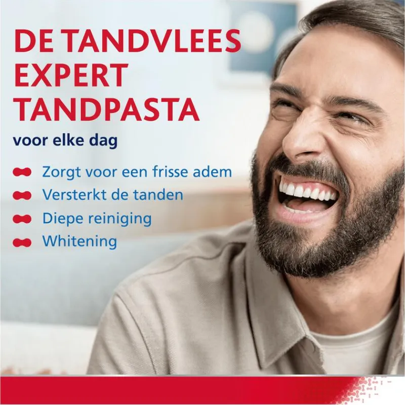 parodontax Complete Protection Extra Fresh tandpasta heeft 8 voordelen voor gezond tandvlees&sterke tanden. En gaat daarmee verder waar een gewone tandpasta stopt. Deze tandpasta is 4x effectiever in het verwijderen van tandplak* en helpt jou daarbij met het volgende: Gezond tandvlees, voorkomt slechte adem, houdt de aansluiting tussen tanden en tandvlees in stand. Daarnaast zorgt Complete Protection tandpasta voor een diepe reiniging tussen de tanden en maakt schoon voor een fris gevoel. parodontax Complete Protection tandpasta zorgt met fluoride voor sterker tandglazuur. Bij 2x daags poetsen.