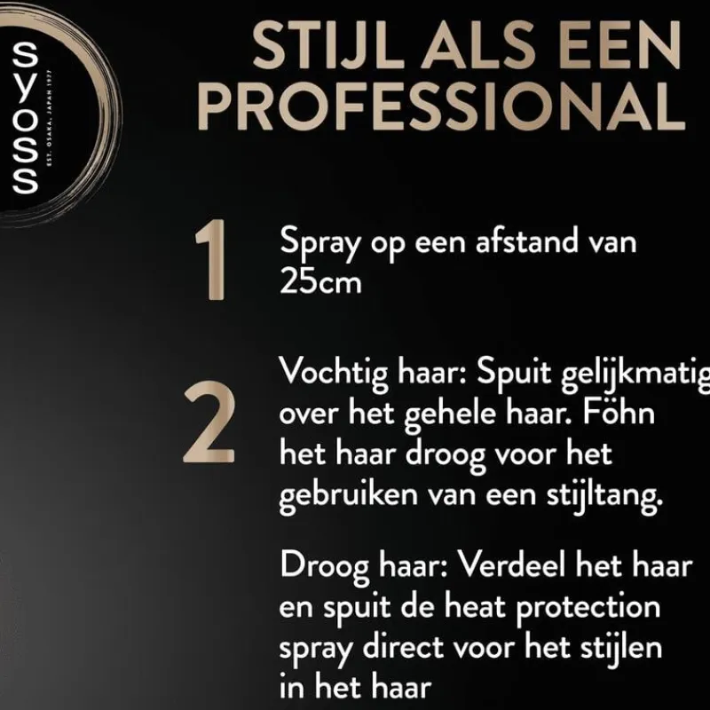 aanvullend Syoss Keratin Hairspray voor een optimaal resultaat. Belangrijk: Nooit een stijltang op vochtig haar gebruiken, dit kan het haar beschadigen! Niet in de ogen spuiten.