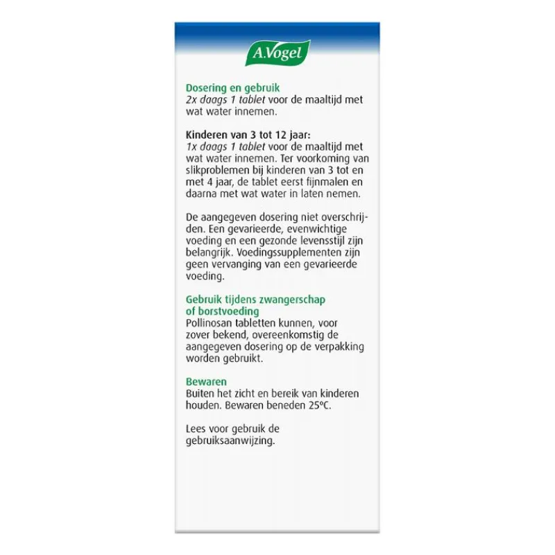2x daags 1 tablet voor de maaltijd met wat water innemen. Kinderen van 3 tot 12 jaar: 1x daags 1 tablet voor de maaltijd met wat water innemen. Ter voorkoming van slikproblemen bij kinderen van 3 tot en met 4 jaar, de tablet eerst fijnmalen en daarna met wat water in laten nemen.