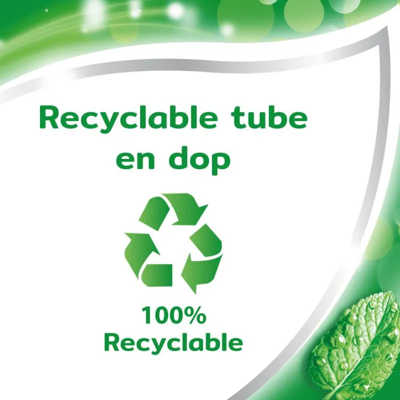 RECYCLEBARE VERPAKKING – Aquafresh Anti-Cariës tandpasta wordt geleverd in een recyclebare plastic tube en dop, vergeet niet deze na gebruik te recyclen.
