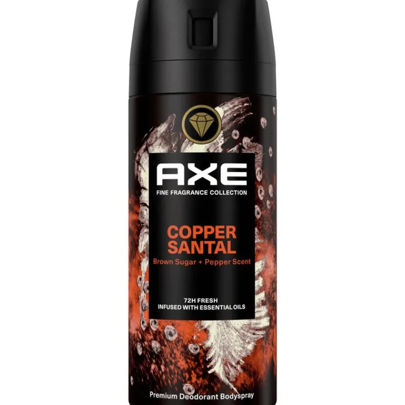 Breng fris blijven naar een hoger niveau. Leef dat dagelijkse frisse leven. Je weet nooit wat er kan gebeuren, dus heb je een deodorant bodyspray nodig die ervoor zorgt dat je de hele dag heerlijk ruikt, elke dag weer. Met AXE Fine Fragrance Collection Copper Santal Premium Deodorant Bodyspray ruik je onweerstaanbaar. Deze bodyspray met de onweerstaanbare geur van sandelhout, bruine suiker en zwarte peper is net zo fris als een luxe parfum! En AXE Copper Santal Deodorant Bodyspray beschermt je daarbij ook nog eens 72 uur lang tegen ongewenste lichaamsgeur. AXE Copper Santal Premium Deodorant Bodyspray is een van de premium geuren uit onze AXE Fine Fragrance Collection-lijn. Dit assortiment, met natuurlijke essentiële oliën en 2 keer meer geurbestrijdende zink-technologie dan onze standaard deodorant bodyspray, is gecreëerd door meesterparfumeurs. Met deze Premium Deodorant Bodysprays ruik je net zo onweerstaanbaar als met een luxe parfum, terwijl je tegelijkertijd de bescherming hebt van een deo.