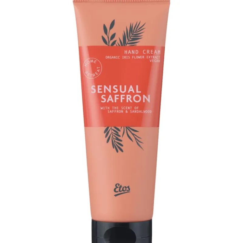 Etos Sensual Saffron Hand cream 75 ml verzorgt je handen en is verrijkt met organic iris bloemextract om te genieten van een wellness moment thuis. Deze handcrème maakt je handen lekker zacht en is licht geparfumeerd met de warme geur van saffraan en sandelhout.