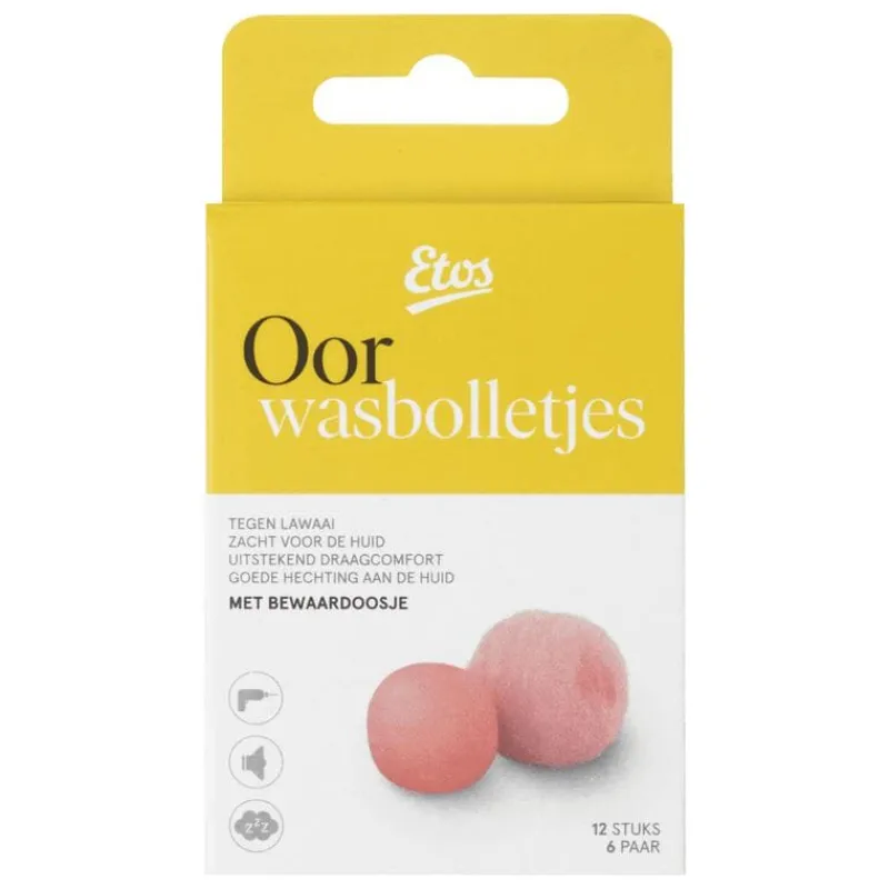 Etos oor wasbolletjes 6 paar helpen de oren te beschermen tegen hinderlijk geluid. Het zachte materiaal zorgt voor een goede pasvorm voor iedere gehoorgang. Daarnaast is het draagcomfort uitstekend aangezien de oordopjes de lichaamstemperatuur aannemen en geen druk op de oren veroorzaken. De dempingswaarde is 27dB.