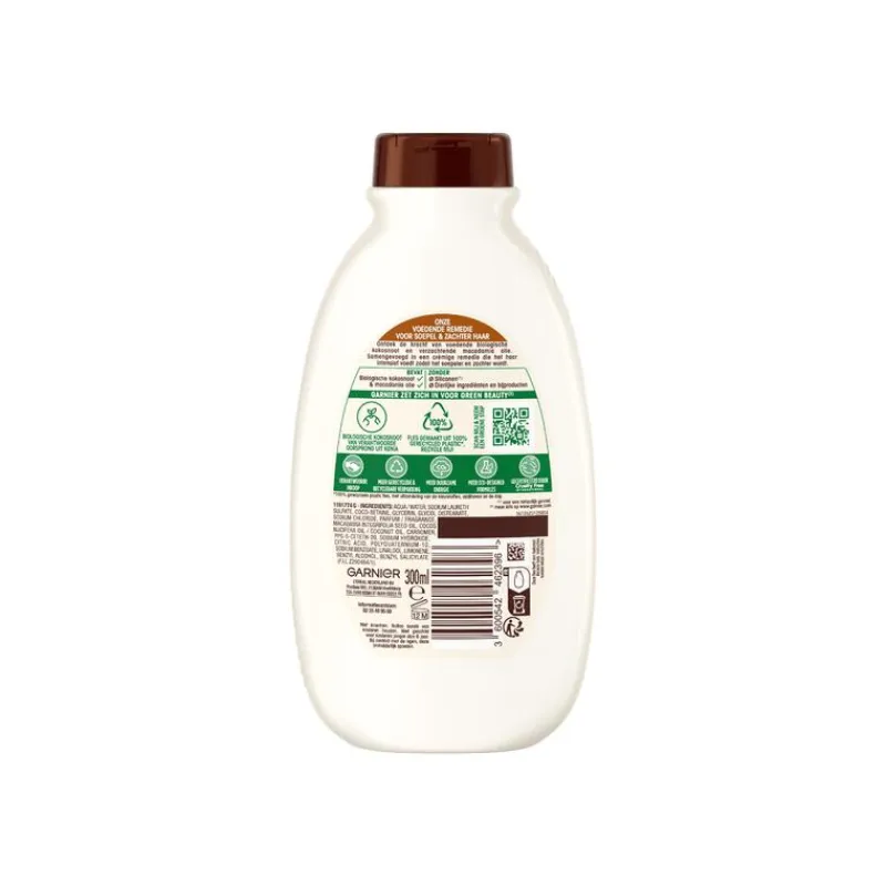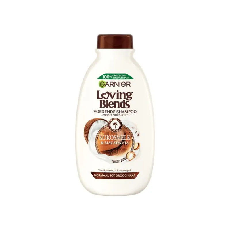 De Loving Blends Kokosmelk & Macadamia Shampoo van Garnier is speciaal ontwikkeld voor normaal tot droog haar. De shampoo voedt en verzacht het haar en laat het weer stralen. Het recept is ontwikkeld met kokosmelk en macadamia: – Kokosmelk is rijk aan oliën en staat bekend om haar ongelooflijk verzachtende en voedende eigenschappen. Dit maakt kokosmelk een perfect ingrediënt voor onze haarproducten. – Macadamianoot oliën bieden veel meer voordelen dan alleen maar dat ze verrukkelijk smaken; deze noten zitten vol met gezonde bouwstoffen zoals eiwitten, om het haar sterker te maken en te herstellen. Dagelijks gebruik van dit recept maakt het haar zachter en soepeler, en geeft een schitterende glans. Formule zonder siliconen, voor een natuurlijk gevoel en zonder dierlijke ingrediënten & bijproducten in een 100% gerecyclede en recyclebare fles met 30% oceaangerelateerde plastic. De shampoo bevat biologische kokosnoot van verantwoorde oorsprong. Loving Blends is gecertificeerd door Cruelty Free International. Ontdek voor nog meer verzorging ook de bijhorende conditioner en het haarmasker.