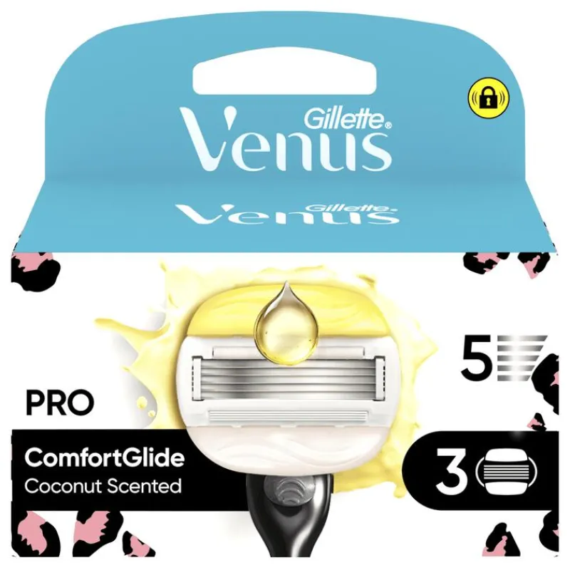 - Langer glad*: Een beetje vocht en kokosnootgeur *in vergelijking met Venus met 3 scheermesjes