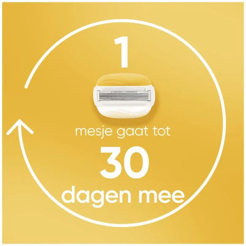 - Schuimt, scheert en exfolieert : 5 mesjes zorgen voor een gladde scheerbeurt dicht op de huid en de flexibele vochtinbrengende strips met kokosnootgeur geven je huid de zorg die ze verdient