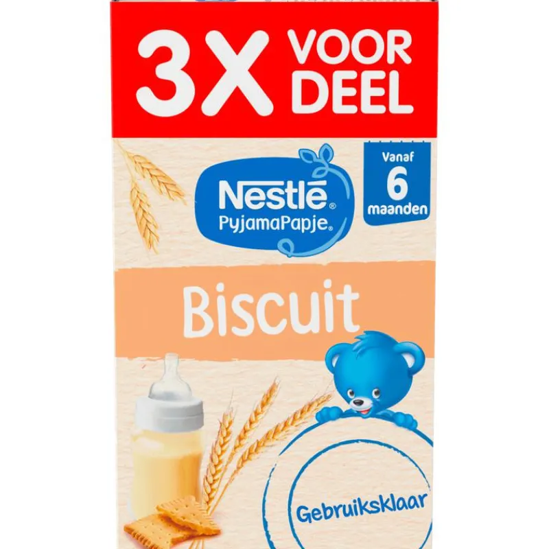 NESTLÉ PyjamaPapje® Biscuit is een lekker gebruiksklaar flessenpapje met vitamine D. Het kan gegeven worden als variatie op een fles melk of een bordje pap. Lekker voor het slapen gaan.