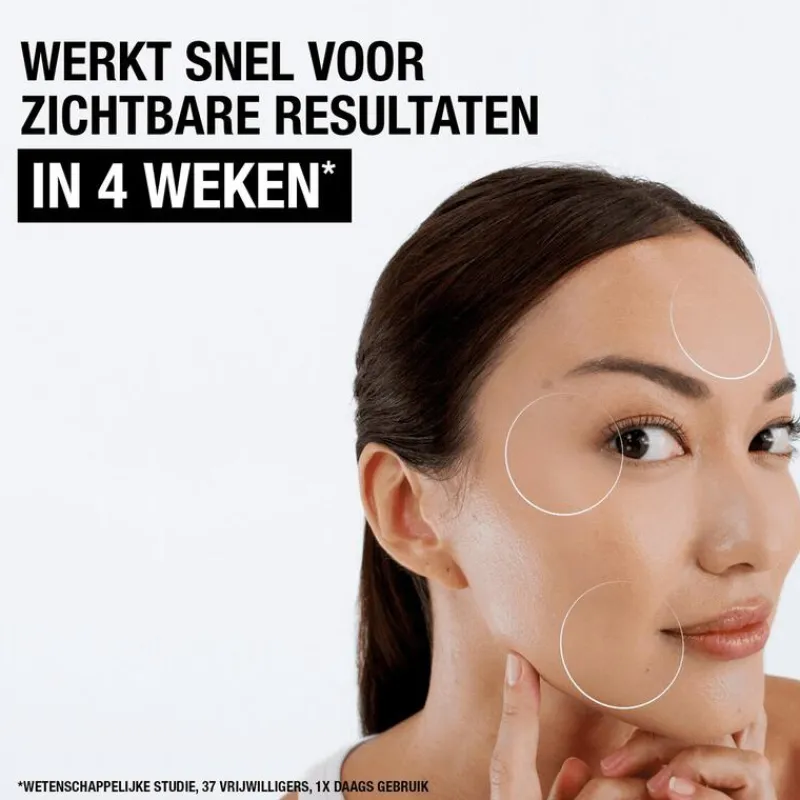 - Wetenschappelijke studie, 37 vrijwilligers. Zelfevaluatie, 30 vrijwilligers. 1x daags gebruik.• Dermatologisch ontwikkeld met pure retinol, antioxidanten (carnosine) en hyaluronzuur.• Milde, ongeparfumeerde formule die niet vet aanvoelt, niet-comedogeen is en de huidbarrière beschermt.