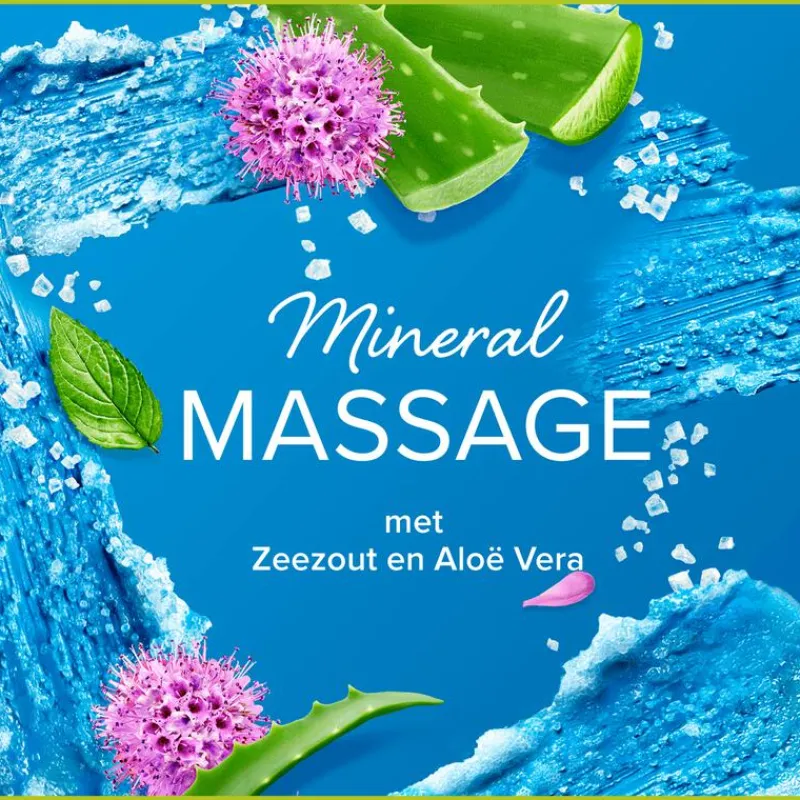 Geniet van een moment voor jezelf en spa-achtige verwennerij bij elke douchebeurt met Palmolive Thermal Mineral Massage douchegel. Deze bodywash met zeezout en aloë vera heeft een heerlijke geur en lekkere scrub-textuur om je te helpen je meer verbonden te voelen met de natuur. Deze douchegel is gemaakt met ingrediënten van 95% natuurlijke oorsprong* en heeft een formule die voor 93% biologisch afbreekbaar is. De douchegel bevat ook 100% natuurlijke essentiële olie voor een luxueuze douche-ervaring waardoor je je helemaal verwend voelt. De douchegel zit in een fles die voor 30% uit gerecycled plastic bestaat en volledig recyclebaar is.Voel je meer mens.Palmolive zet zich in voor verantwoorde inkoop. Meer hierover vind je op Palmolive.eu.com/naturalworld.*Water en natuurlijke ingrediënten met beperkte verwerking.