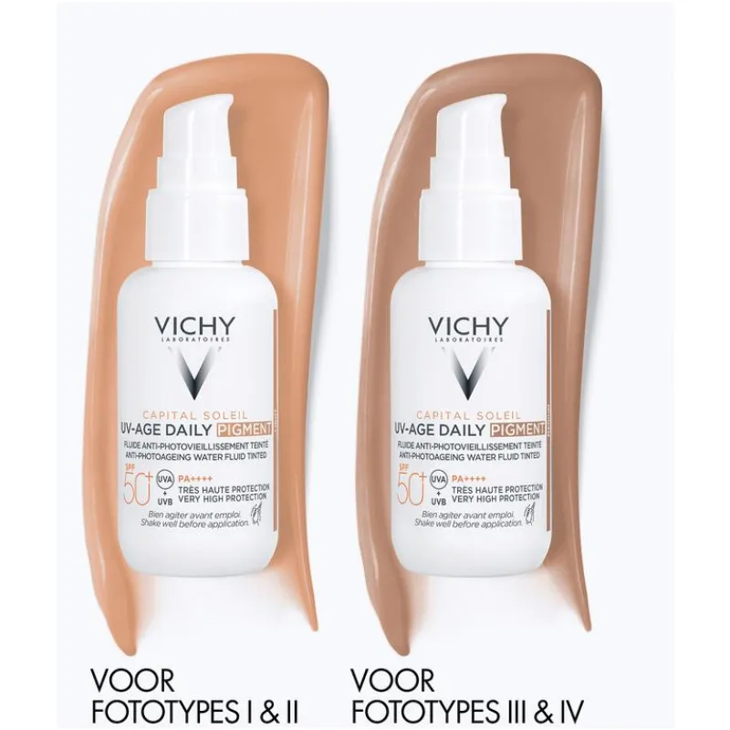 - Vichy Capital Soleil UV-Age Daily SPF50+ Pigment Medium voor een dubbele actie anti-veroudering en zonnebescherming
